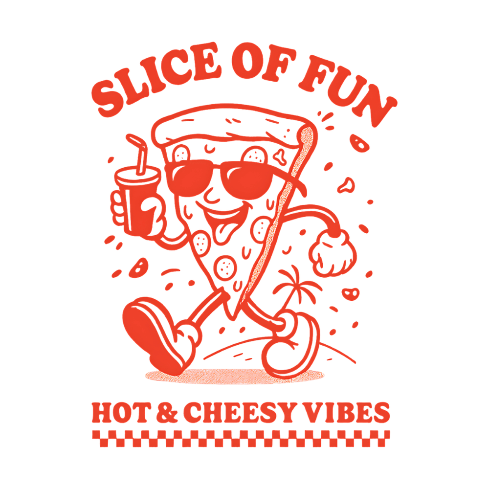 xHou je van pizza én een flinke dosis humor? Dan is dit zomervakantie T-shirt echt iets voor jou! Het vrolijke “Slice of Fun” design toont een pizza slice met zonnebril en drankje die de ultieme cheesy vibes uitstraalt. Ideaal voor iedereen die houdt van lekker eten, zomerse sferen en grappige prints. Dit T-shirt brengt gegarandeerd een glimlach op je gezicht. Verkrijgbaar in meerdere kleuren zodat je altijd een versie vindt die bij jouw stijl past.